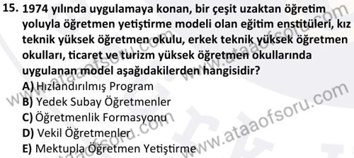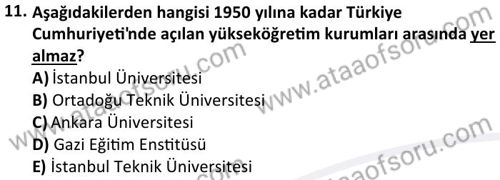 Türk Eğitim Tarihi Dersi Final Deneme Sınavı (8 Aralık)