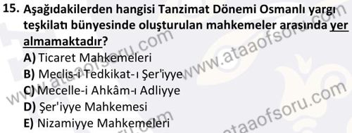 Türk Hukuk Tarihi Dersi Ara Deneme Sınavı (21 Kasım)