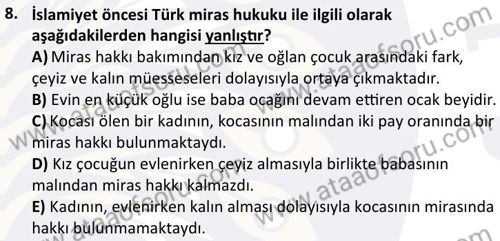 Türk Hukuk Tarihi Dersi Final Deneme Sınavı (8 Aralık)