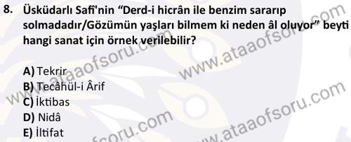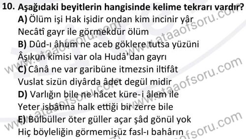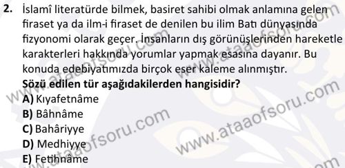Türk İslam Edebiyatı Dersi 2024-2025 Bahar Dönemi Bütünleme Sınavı Çıkmış Sınav Soruları ve Çözümleri