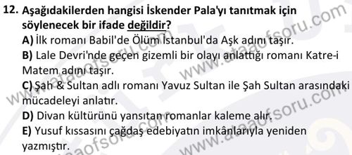 Türk İslam Edebiyatı Dersi 2024-2025 Bahar Dönemi Bütünleme Sınavı Çıkmış Sınav Soruları ve Özetleri. Geçmiş dönemlere ait sınav sorularını çözerek sınavlarda gelebilecek soru kalıplarının ve benzer soruları yakalamanız daha kolay olacaktır. Çıkmış sınav soruları ile beraber konu anlatımı, ders özetleri ve online deneme sınavları ile sınavlara hazrılanabilirsin.