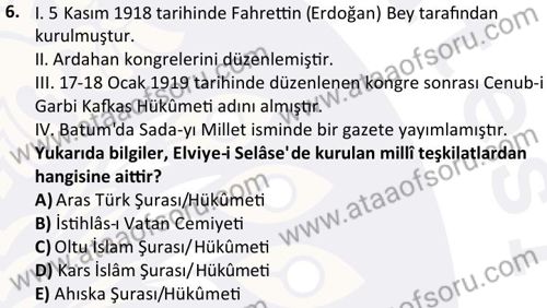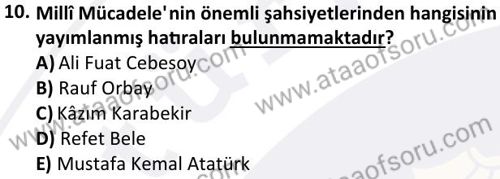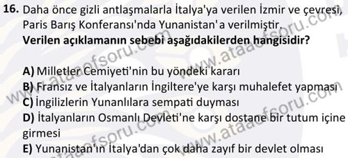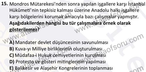 Türk Milli Mücadele Tarihi Dersi 2025-2026 Güz Dönemi Final Sınavı Çıkmış Sınav Soruları ve Çözümleri