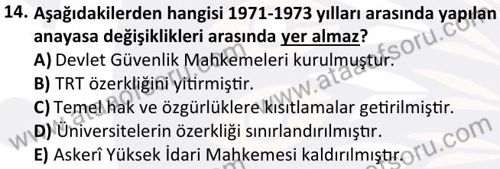 Türk Siyasi Hayatı Dersi 2024-2025 Bahar Dönemi Bütünleme Sınavı Çıkmış Sınav Soruları ve Çözümleri