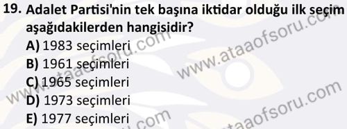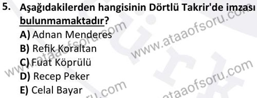 Türk Siyasi Hayatı Dersi 2024-2025 Bahar Dönemi Final Sınavı Çıkmış Sınav Soruları ve Çözümleri