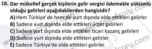 Türk Vergi Sistemi Dersi 2024-2025 Bahar Dönemi Final Sınavı Çıkmış Sınav Soruları ve Çözümleri