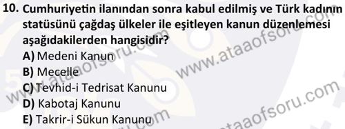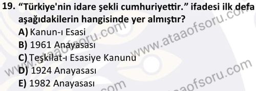 Türk Yenileşme Tarihi Dersi 2023-2024 Mezuniyet Üç Ders Sınavı Çıkmış Sınav Soruları ve Çözümleri