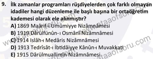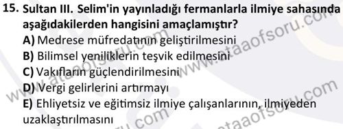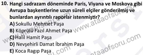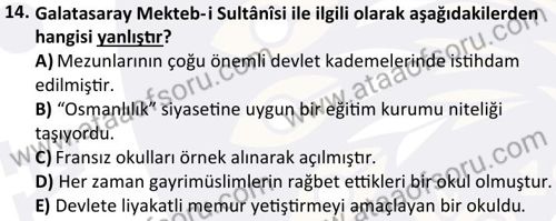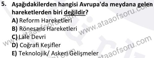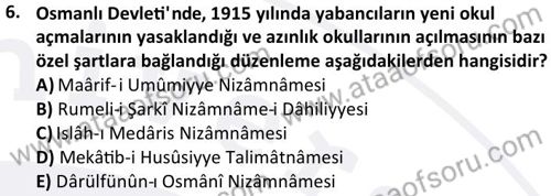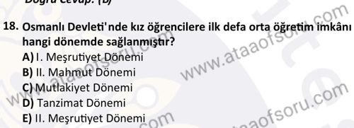 Türk Yenileşme Tarihi Dersi Ara Deneme Sınavı (18 Kasım)