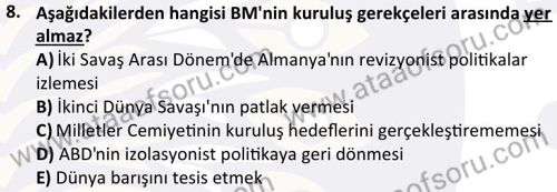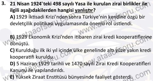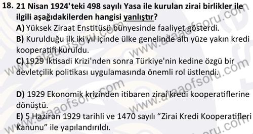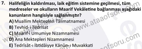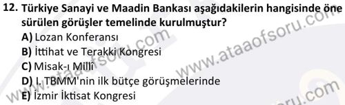 Türkiye Cumhuriyeti Kurumları Tarihi Dersi Final Deneme Sınavı (8 Aralık)