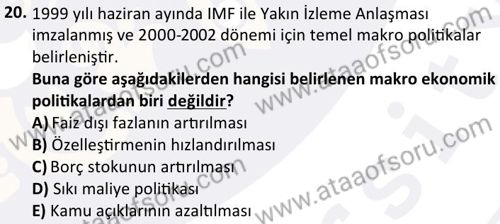 Türkiye Ekonomisi Dersi 2024-2025 Bahar Dönemi Final Sınavı Çıkmış Sınav Soruları ve Çözümleri