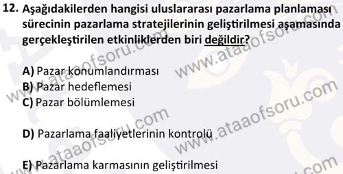 Uluslararası Pazarlama Dersi 2024-2025 Güz Dönemi Bütünleme Sınavı Çıkmış Sınav Soruları ve Çözümleri