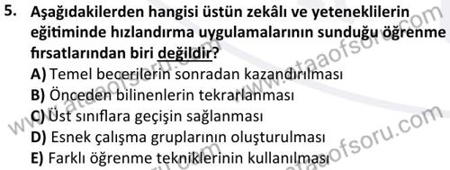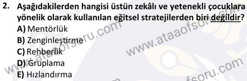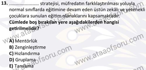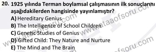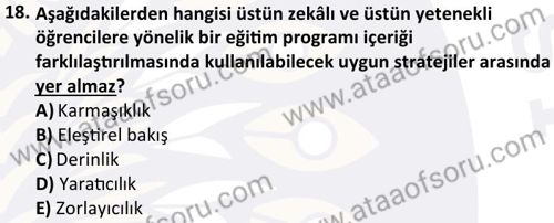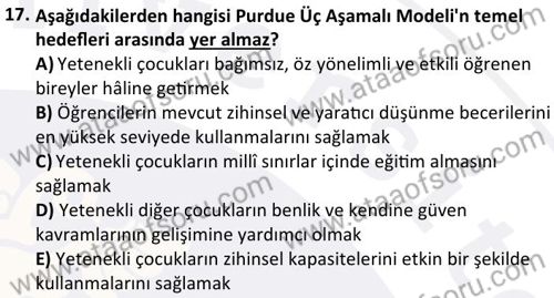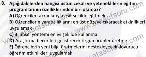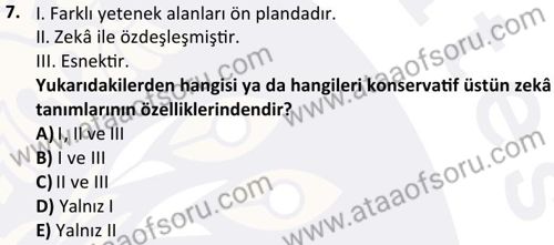 Üstün Zekalı ve Yetenekli Çocuklar Dersi 2025-2026 Güz Dönemi Final Sınavı Çıkmış Sınav Soruları ve Çözümleri