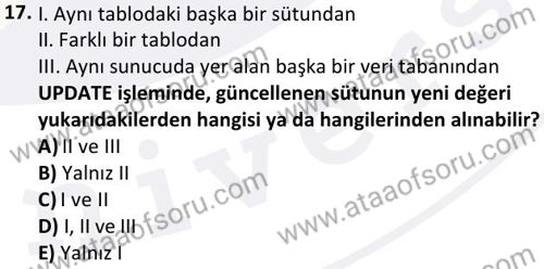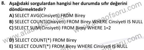 Veri Tabanı Yönetim Sistemleri Dersi 2024-2025 Bahar Dönemi Final Sınavı Çıkmış Sınav Soruları ve Çözümleri