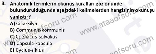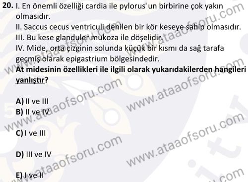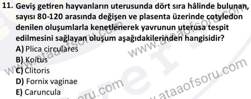 Veteriner Anatomi Dersi 2024-2025 Güz Dönemi Bütünleme Sınavı Çıkmış Sınav Soruları ve Çözümleri