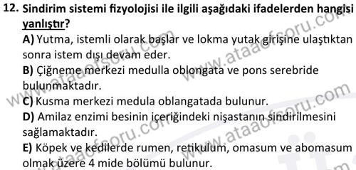 Veteriner Fizyoloji Dersi 2025-2026 Güz Dönemi Ara Sınavı Çıkmış Sınav Soruları ve Çözümleri