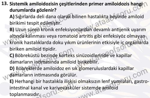 Veteriner Genel Patoloji Dersi 2025-2026 Güz Dönemi Ara Sınavı Çıkmış Sınav Soruları ve Çözümleri