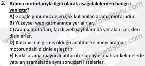 Web Okuryazarlığı Dersi Ara Deneme Sınavı (17 Kasım)