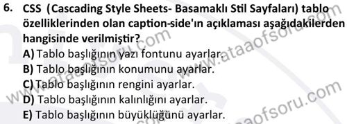 Web Tasarımının Temelleri Dersi Bütünleme Deneme Sınavı (26 Ocak)