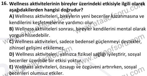 Wellness Uygulamaları Dersi 2024-2025 Güz Dönemi Bütünleme Sınavı Çıkmış Sınav Soruları ve Çözümleri