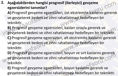 Wellness Uygulamaları Dersi Ara Deneme Sınavı (10 Kasım)