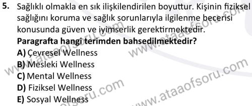Wellness Uygulamaları Dersi Final Deneme Sınavı (1 Aralık)