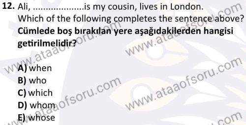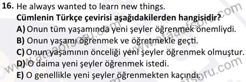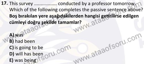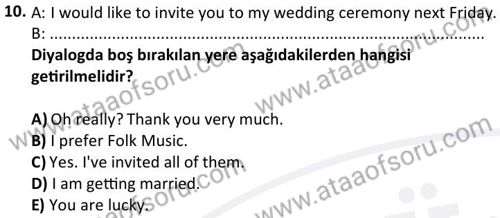 Yabancı Dil 2 Dersi 2024-2025 Bahar Dönemi Final Sınavı Çıkmış Sınav Soruları ve Çözümleri