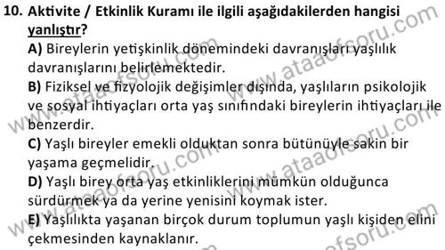 Yaşlılar ve Spor Dersi Ara Deneme Sınavı (19 Kasım)