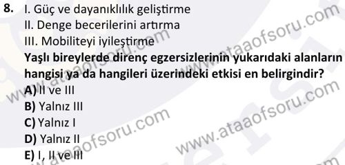 Yaşlılar ve Spor Dersi Final Deneme Sınavı (8 Aralık)