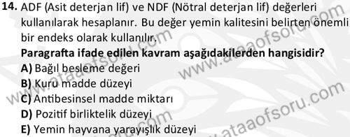 Yem Bilgisi ve Hayvan Besleme Dersi 2024-2025 Güz Dönemi Ara Sınavı Çıkmış Sınav Soruları ve Çözümleri