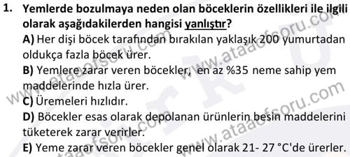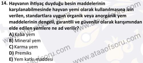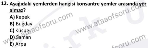 Yem Bilgisi ve Hayvan Besleme Dersi 2024-2025 Güz Dönemi Bütünleme Sınavı Çıkmış Sınav Soruları ve Çözümleri