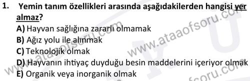 Yem Bilgisi ve Hayvan Besleme Dersi 2025-2026 Güz Dönemi Final Sınavı Çıkmış Sınav Soruları ve Çözümleri
