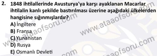 Yeni ve Yakınçağ Avrupa Tarihi Dersi 2024-2025 Güz Dönemi Bütünleme Sınavı Çıkmış Sınav Soruları ve Çözümleri
