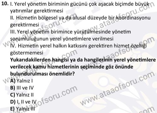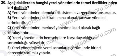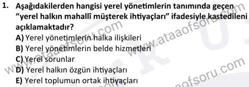 Yerel Yönetimler ve Sosyal Hizmet Dersi 2025-2026 Güz Dönemi Ara Sınavı Çıkmış Sınav Soruları ve Çözümleri