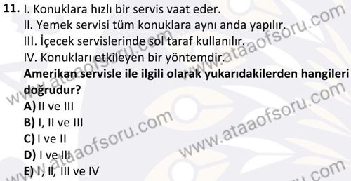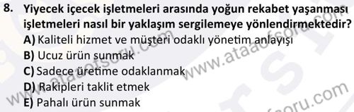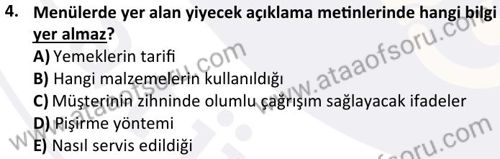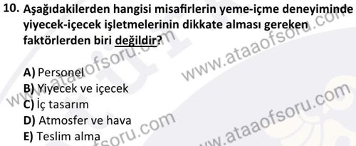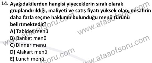 Yiyecek İçecek Hizmetleri Yönetimi Dersi 2024-2025 Bahar Dönemi Bütünleme Sınavı Çıkmış Sınav Soruları ve Çözümleri