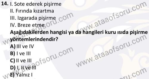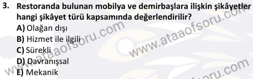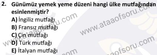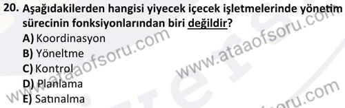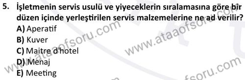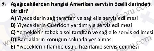 Yiyecek İçecek Hizmetleri Yönetimi Dersi 2024-2025 Bahar Dönemi Final Sınavı Çıkmış Sınav Soruları ve Çözümleri