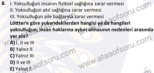 Yoksulluk ve Sosyal Hizmet Dersi 2024-2025 Güz Dönemi Bütünleme Sınavı Çıkmış Sınav Soruları ve Çözümleri